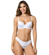 Conjunto de brasier de realce medio y panti brasilera con detalle de encaje, es un diseño pensado para realzar la silueta de forma natural. El brasier cuenta con copas estructuradas que brindan un realce sutil del busto, ofreciendo un ajuste seguro y confortable para el uso diario o para ocasiones especiales. El panti estilo brasilera complementa el conjunto con un diseño femenino que se adapta suavemente al cuerpo, proporcionando libertad de movimiento y una sensación agradable durante todo el día.