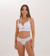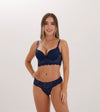 Brasier con aro, tipo bustier y escote profundo, ideal para mujeres con busto regular que buscan realce y soporte sin perder comodidad. Su base ancha en encaje se ajusta perfectamente al cuerpo, brindando un toque femenino y delicado.