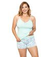 Conjunto pijama y short con blusa de tirantes que conforman la combinación perfecta para estar tranquila y fresca a la hora de dormir.