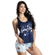 Pijama con short corto estampado y blusa con cuello redondeado. Es la combinación perfecta para estar cómoda a la hora de dormir.