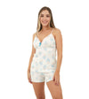 Conjunto de pijama en short y blusa de tiras para quete relajes en tus noches frescas y te sientas comoda en todo momento.