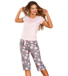 Pijama en capri y camisa manga corta que ofrecen comodidad durante el descanso y tiempo en casa proporcionando una sensación más relajada.