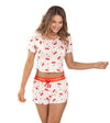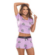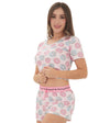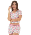 Pijama de dos piezas compuesta por camiseta de manga corta y short de silueta cómoda. La camiseta tiene un ajuste suave al cuerpo y cuello redondo clásico, ideal para brindar frescura y libertad de movimiento durante el descanso. El short cuenta con pretina elástica que se adapta cómodamente a la cintura, ofreciendo ajuste práctico y mayor confort.