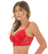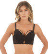 Un brasier infaltable. Su base ancha estiliza el torso y el encaje aporta ese toque sensual que nunca falla. El detalle frontal con tiras crea un efecto llamativo que realza el escote y le suma personalidad a la prenda. Ideal para usar como protagonista bajo prendas abiertas.