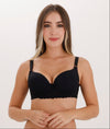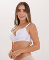 Este brasier con aro ofrece un realce natural y un diseño femenino que combina elegancia y soporte. Su copa lisa brinda un acabado suave, mientras que el encaje en la base y laterales añade un toque romántico y sofisticado. Ideal para quienes buscan una prenda cómoda sin renunciar al estilo.